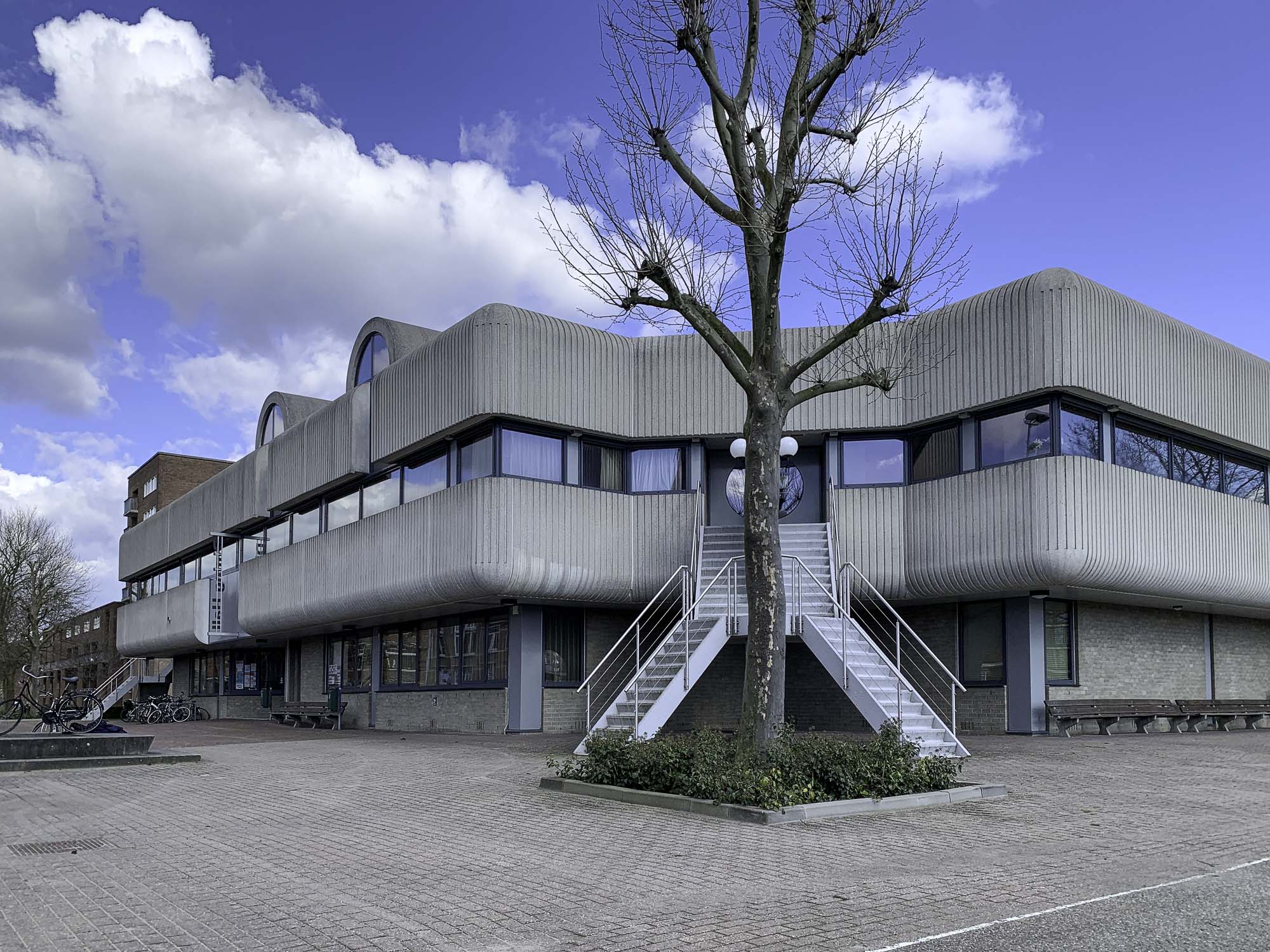 De Vierpoot, de voormalige kantine van de Kromhoutkazerne, nu de ‘Dining Hall’ van het University College Utrecht. Lees meer over dit vrolijke staaltje brutalisme op ‘Oostblog’, het weblog van Martijn Haan, die deze foto leverde. Sinds 2024 speelt Moira-Domtoren hier af en toe (KNSB-)wedstrijden.